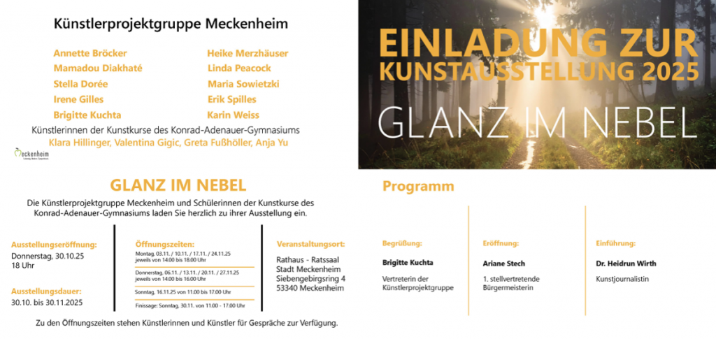 Brigitte Kuchta „Glanz im Nebel“Ausstellung im Ratssaal der Stadt Meckenheimvom 30.10. – 30.11.25 kunst-kuchta(at)online.de